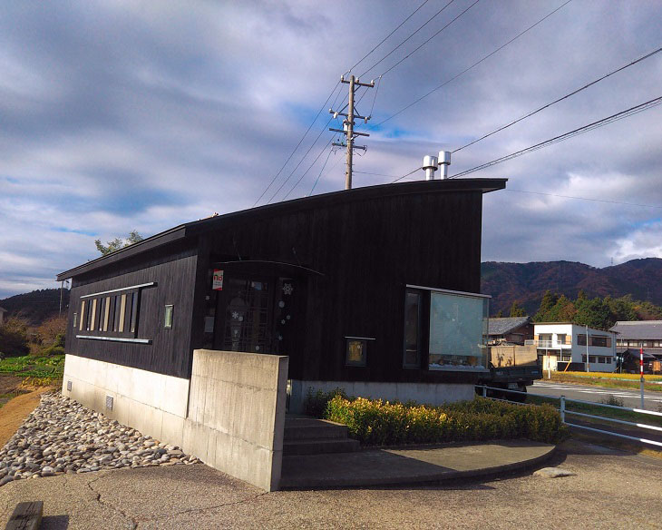 黒い外観が存在感あるたたずまいで、のどかな田園風景のなかでひときわ目立っていました。建築家中村好文さんの設計だそうです。